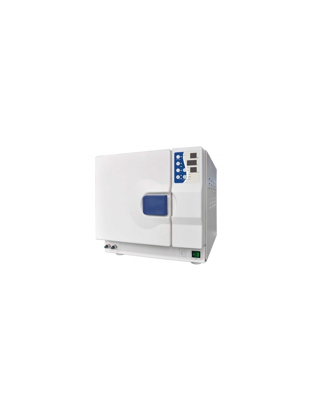 El autoclave esta computarizado, es fácil de usar. Su pantalla en tiempo real muestra todos los datos durante el ciclo de esterilización. El programa de software ofrece auto-diagnóstico, protección contra sobre calentamiento y sobre presurización asegurando así seguridad en los resultados de la esterilización. El sistema del depósito de agua interior previene de descargas o pérdidas de vapor y mantiene el autoclave limpio y seguro. Ciclos disponibles: 121º y 134º sin vacio (ciclos rápidos), 121º y 134º con vacio, 134º 17’ y ciclo de test de vacío. Función USB. Guías para bandejas 1ud y bandejas para instrumental 3 uds. Llave ajuste puerta 1 ud. Impresora (opcional)